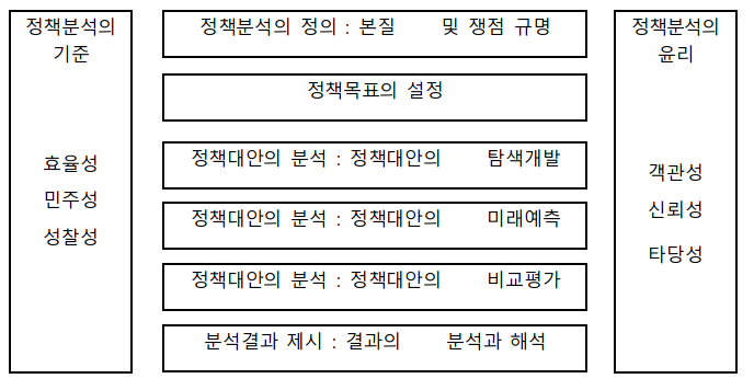 - 정책형성 과정에서 정책문제에 대한 본질적 쟁점을 분석하고, 그에 따른 정책목표, 정책수단, 정책대상 집단에 대한 과학적, 체계적인 분석을 통해 정책결정의 합리성을 제고하는 노력의 과정